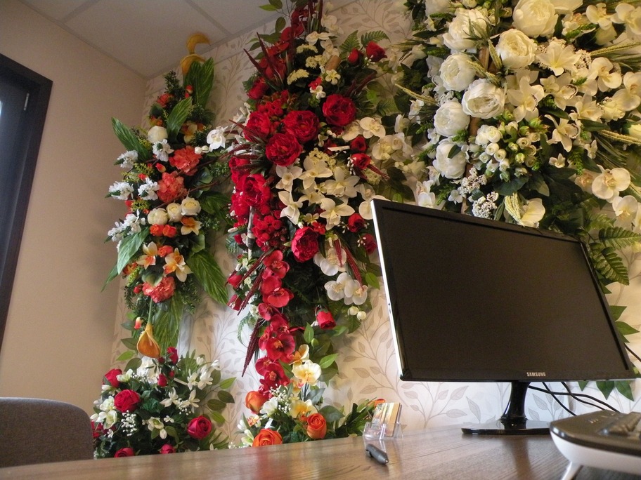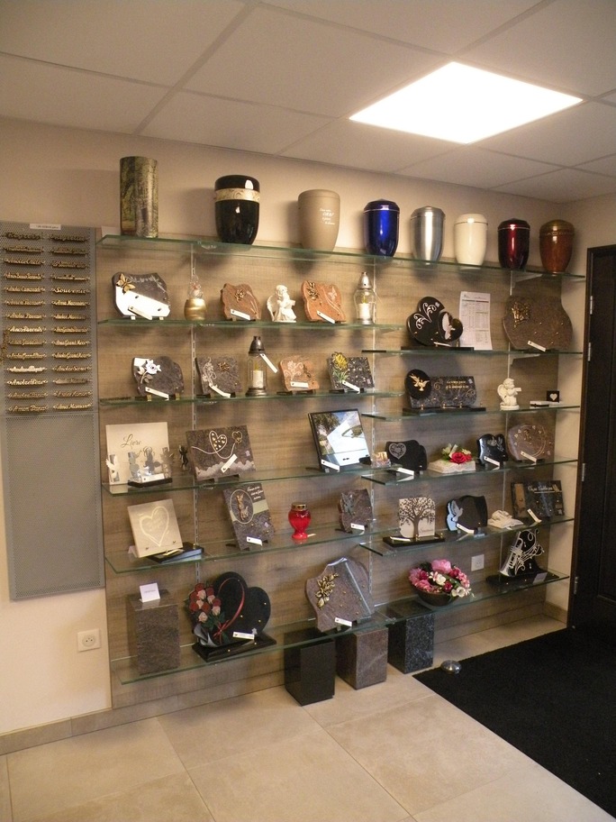 - – les articles : cercueil, capiton, urne, fleurs, plaques;